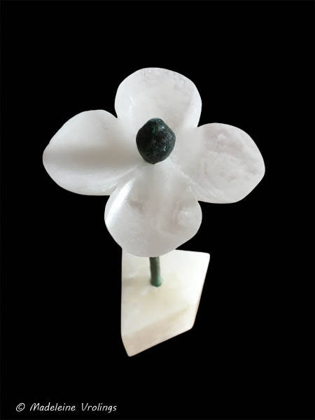 Ik had nog een steeltje van brons over en heb daar bloemblaadjes voor gemaakt van albast met daaronder een sokkel van albast