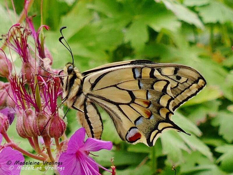 zeer zeldzaam geraniumblauwtje in de tuin