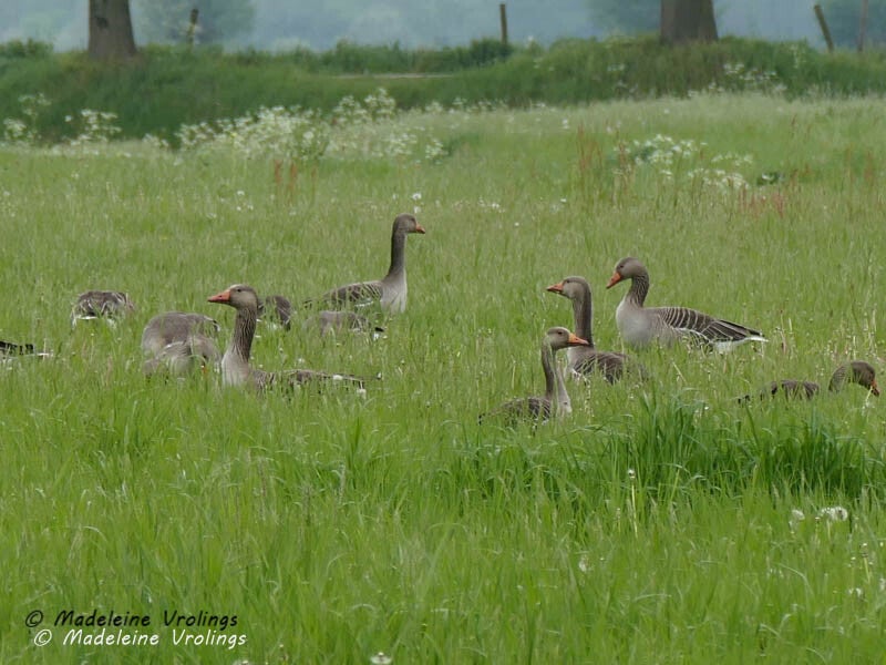 Grauwe ganzen en witte reiger