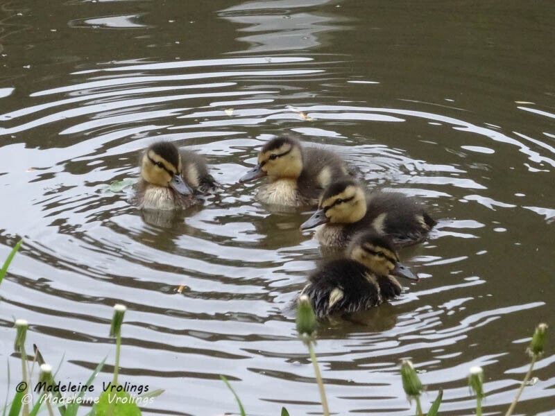 Jonge eendjes en zilverreiger