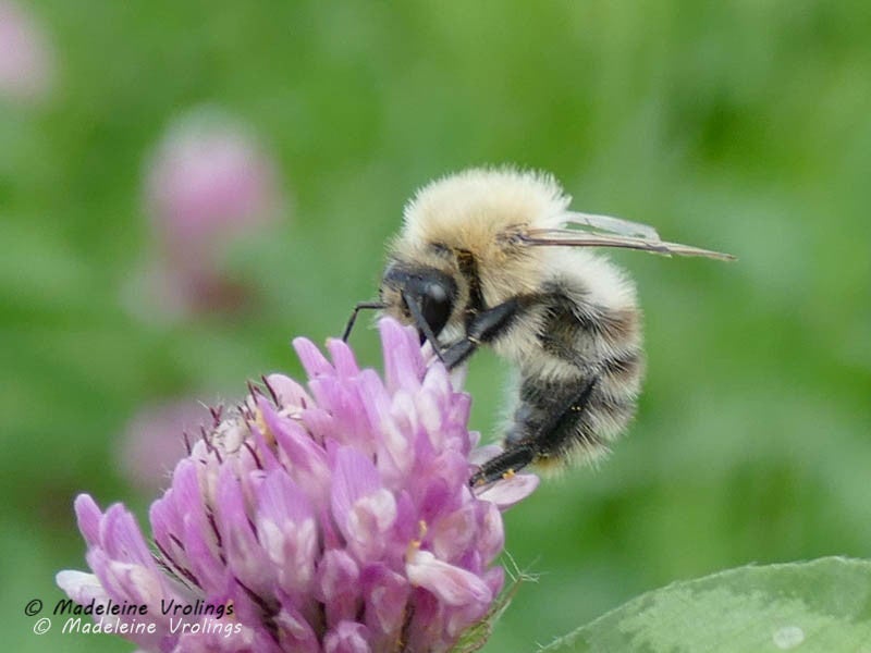Gevlekte wolzwever, hommel, bloemen, vlinders